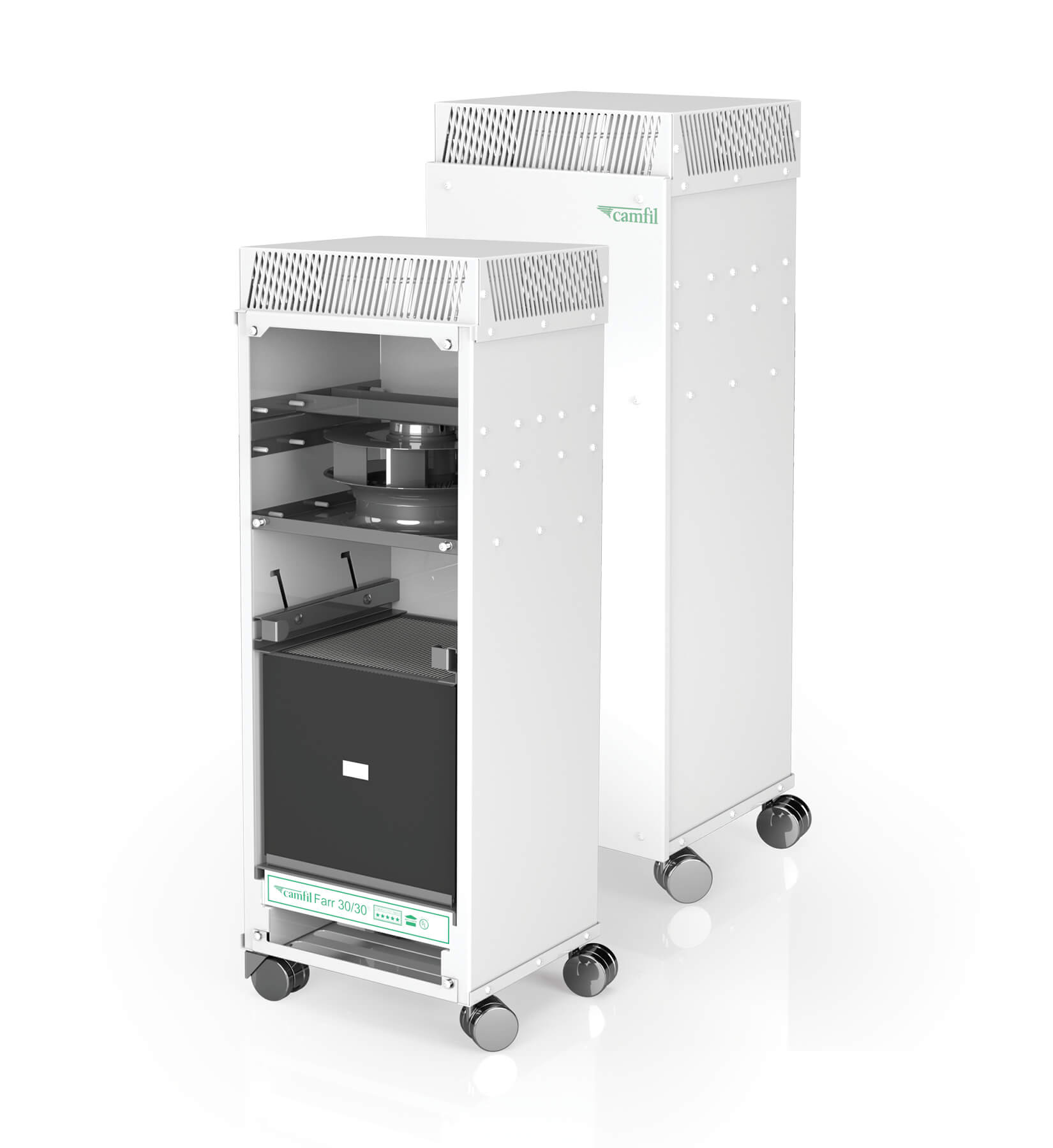 The CamCleaner CC500 can be used as a room air purifier or installed to create negatively pressurized isolation areas.